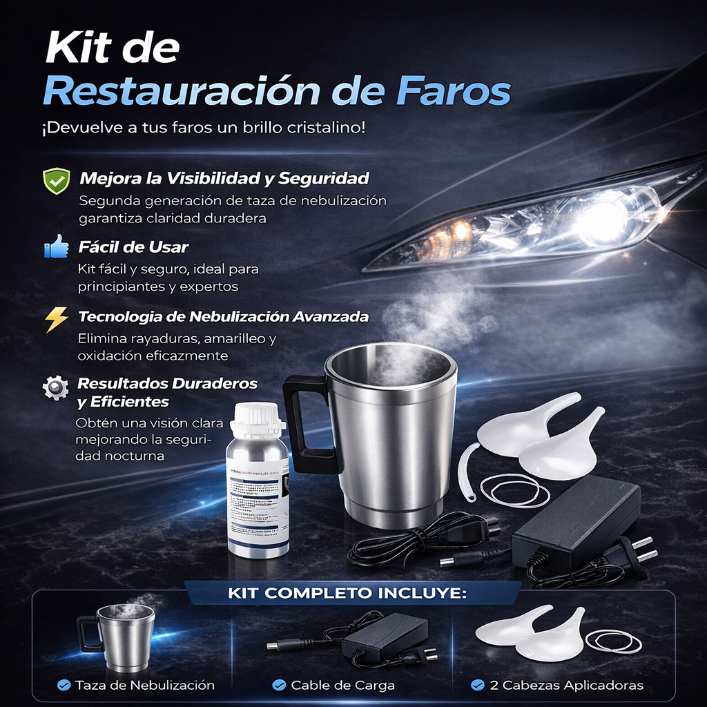 Kit profesional para restaurar y pulir faros de coche, diseñado para eliminar la opacidad, el amarillamiento y las marcas del tiempo.